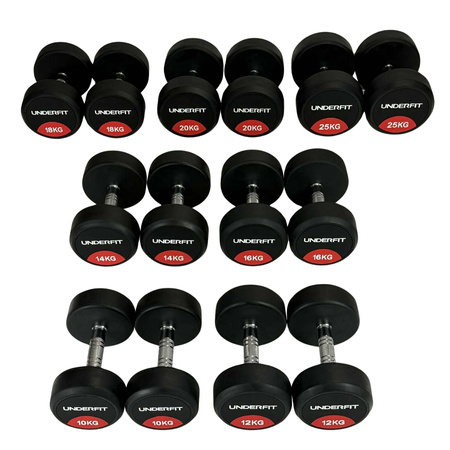 Zestaw hantli gumowanych UNDERFIT 2 x 10–25kg 7 par (230 kg) siłownia